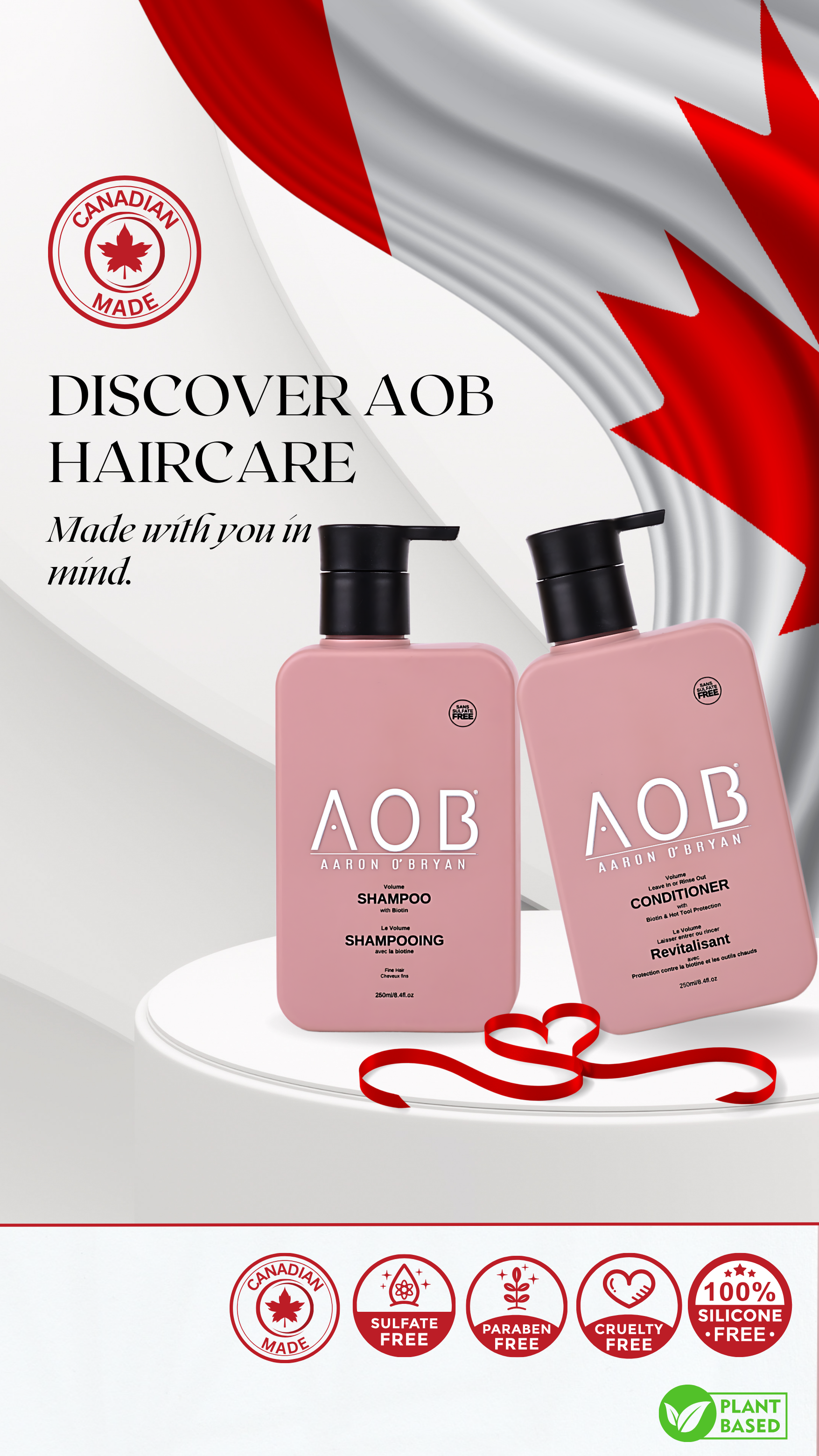 Proudly Canadian made, at AOB Hair, we believe that high-performance haircare and eco-conscious values should go hand in hand. That's why every AOB product is proudly Canadian-made, crafted with organic, ethically sourced ingredients and designed to deliver exceptional results without compromising sustainability.